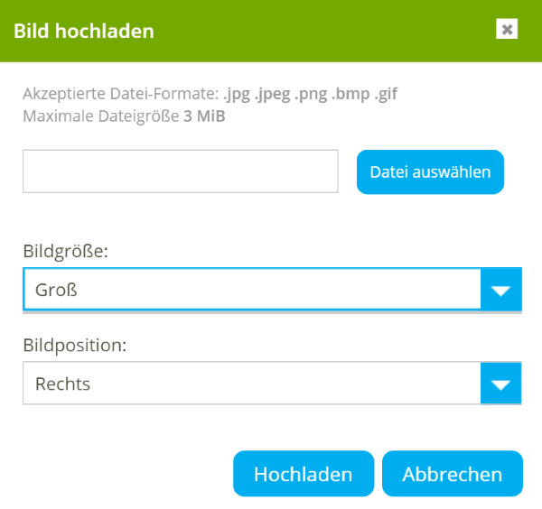 - Laden Sie ein Bild hoch, falls gewünscht;