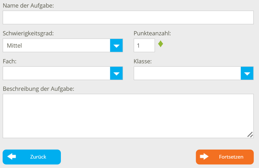 - Geben Sie die erreichbare Punktzahl für die richtige Lösung der Aufgabe ein;
