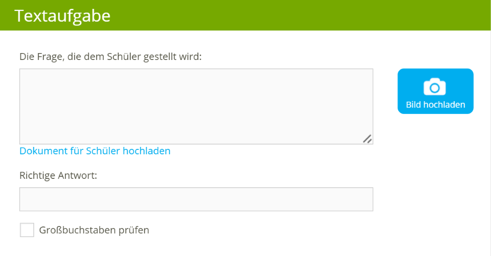 - Haken Sie das Kästchen an, wenn in Ihrer Aufgabe die Großschreibung des ersten Buchstabens berücksichtigt werden soll;