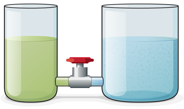 Bestimme, ob das Seewasser aus dem Gefäß \(Nr.2\) in das Gefäß \(Nr.1\) fließt, wenn man den Hahn öffnet.